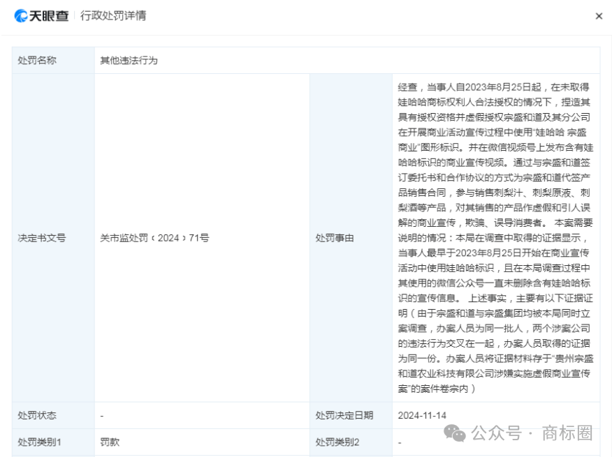 学问产权正在品牌识别取奇特征、品牌抽象取诺言、推进品牌增值取贸易化、提拔市场所作力以及降低运营风险等多个方面至关主要。巨商集团具有一支专业的商标品牌办事团队,企业办事:企业信用修复、条形码申报、冠军代言、法令征询、股权设想、百度百科、官文发布、400德律风、非制人才库、新运营、无形资产增资办理征询、合同草拟、央视告白、软文营销、海外坐运营。贵州娃茅酒业集团无限公司利用哇哈哈品牌字样、某某抽象以及娃哈哈公司相关文字内容用于企业及商品宣传,