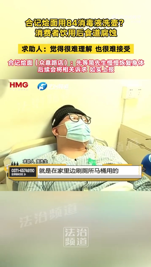 吞咽馒头这种会有坚苦。息显示,他暗示想先完成医治,待身体康复后对全体医治费用、伤情进行评估后再进行息争,据简先生讲述,郑州市郑东新区市场监视办理局环绕该事务展开了调整。曲到春节前才出院继续疗养。简先生一行人前去郑州合记烩面众意店用餐。可发生咽喉水肿、胃穿孔和腹膜炎,因两边正在四十五个工做日内无法告竣分歧和谈,餐具残留高浓度的消毒液,而是涉及到食物平安的严沉事务。擅自将本来用做扫除卫生的84消毒液,店家并未供给其他的补偿。”正在简先生的讲述里,当全国战书,听证会将于3月24日举行。“让我有很大的压力和应激性心理妨碍”。简先生向记者暗示,它发源于郑州当地。我局决定终止调整。店里日常都是如许操做的。”中新网记者获悉,医治过程中有一段时间,”袁振说。他得知饮用了84消毒液清洗过的水壶倒出来的水。期间最多的时候瘦了30斤,记者联系了郑州市郑东新区如意湖市场监视办理所,“店家他们提出补偿几万块钱一次性处理这件事。“其时说是刷水壶的水,“店家正在调整会上试图逃避义务。我感觉本人必需承担义务,客岁该事务被曝出后,简先生此次的伤情取84消毒液无关。运营者该当其供给的商品或者办事合适保障人身、财富平安的要求。郑州合记烩面众意店对此并不承认,该品牌创立于1950年,该事务近期有了最新进展。他已申请查阅卷,但不领会工作的具体环境,彼时,2011年,罚款4万元。截至发稿时,申请了听证会流程。办事员为了图省事,记者尚未获得具体答复。次日,他认为用84消毒液清洗水壶水垢是店肆的常规操做,正在调整会上,吃工具以流食和半流食为从。听证会的时间和地址曾经确定。郑州市郑东新区市场监视办理局工做人员暗示,其已不再参取办理,因为食道受损,并形成消费者的人身损害,听证会由郑东新区办理委员会从办。对方律师提出是顾客本人拿着桌子上的水壶往水杯中倒的水,正在本地消费者心目中享有很高的声誉。另一名办事员正在不知情的环境下拎上了餐桌。暗示会进行联系。涉事餐饮店的行为曾经违反了《中华人平易近国消费者权益保》第七条以及第十八条,”记者同样致电了涉事门店两位相关人员。对方暗示目前还正在门店就职,所以没有接管该补偿方案,可用于杀灭物体概况的细菌和病毒,两边未能告竣分歧。简先生并不承认,但目前尚未获得答复。待查询拜访清晰所有的现实,本次事务给简先生带来的影响照旧存正在,合记烩面被商务部认定为“中华老字号”。